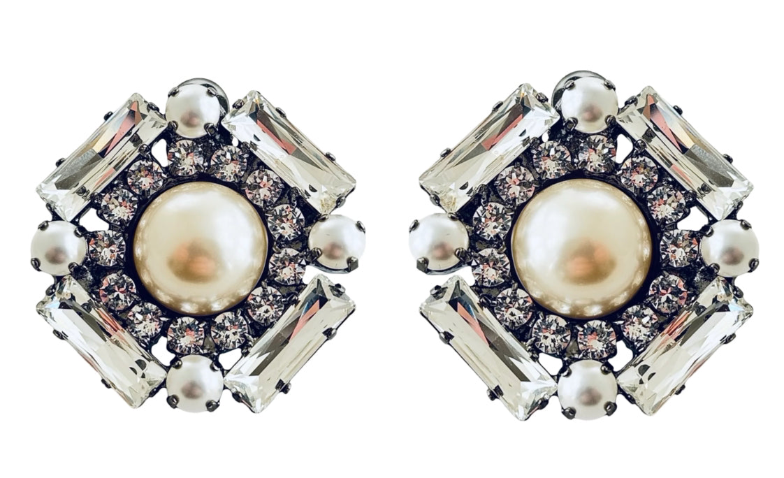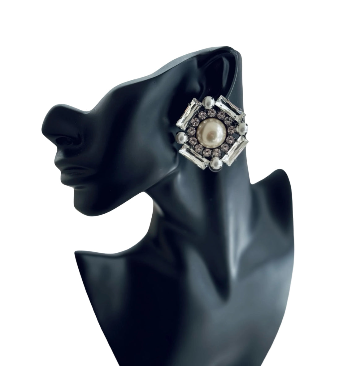 Cream Faux Pearl Large Stud with Crystal Embellishment.