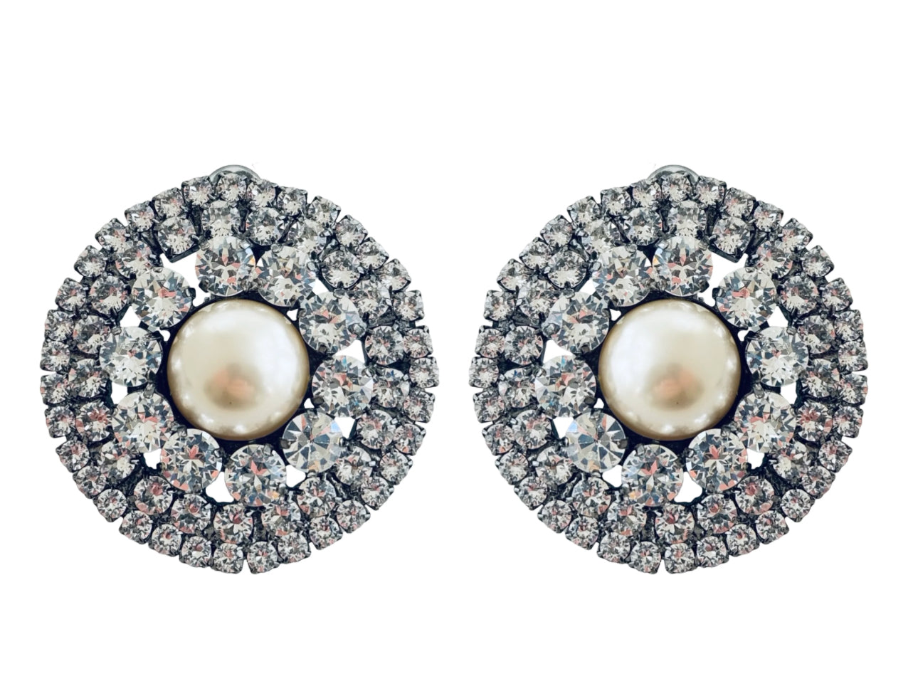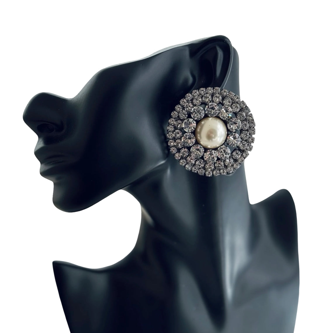 Cream Faux Pearl Large Stud with Crystal Embellishment.