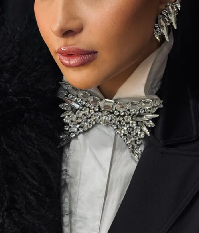 • Crystal embellished Metallic Bow tie in Clear Crystal tones.
